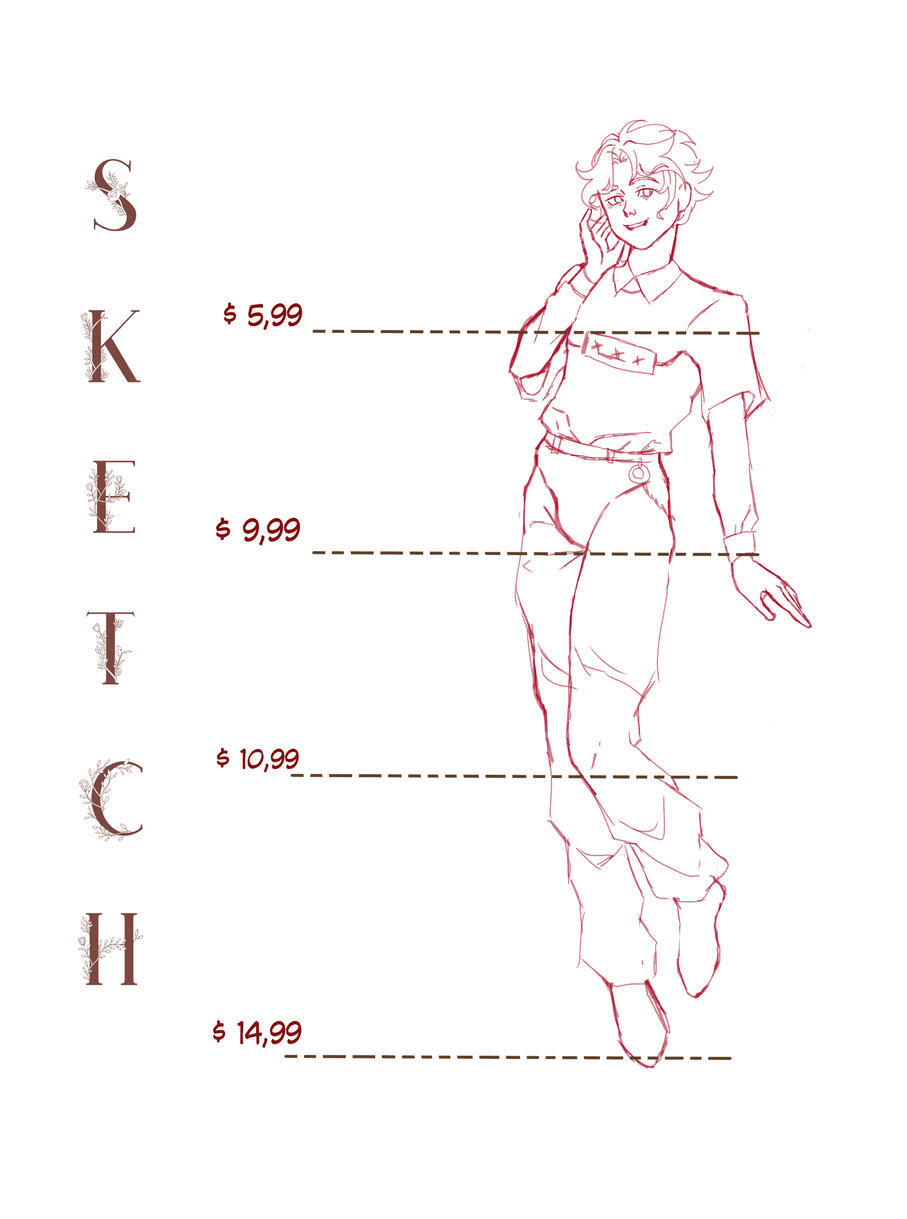 the draft drawing as it develops, up to the point when the lineart is 75% complete. After this milestone, no changes can be requestedMy payment method is 50%/50%, i.e. I receive 50% of the initial amount before starting the commission and 50% after finishing, the commission will have a watermark before the final payment.Artwork for commercial purposes